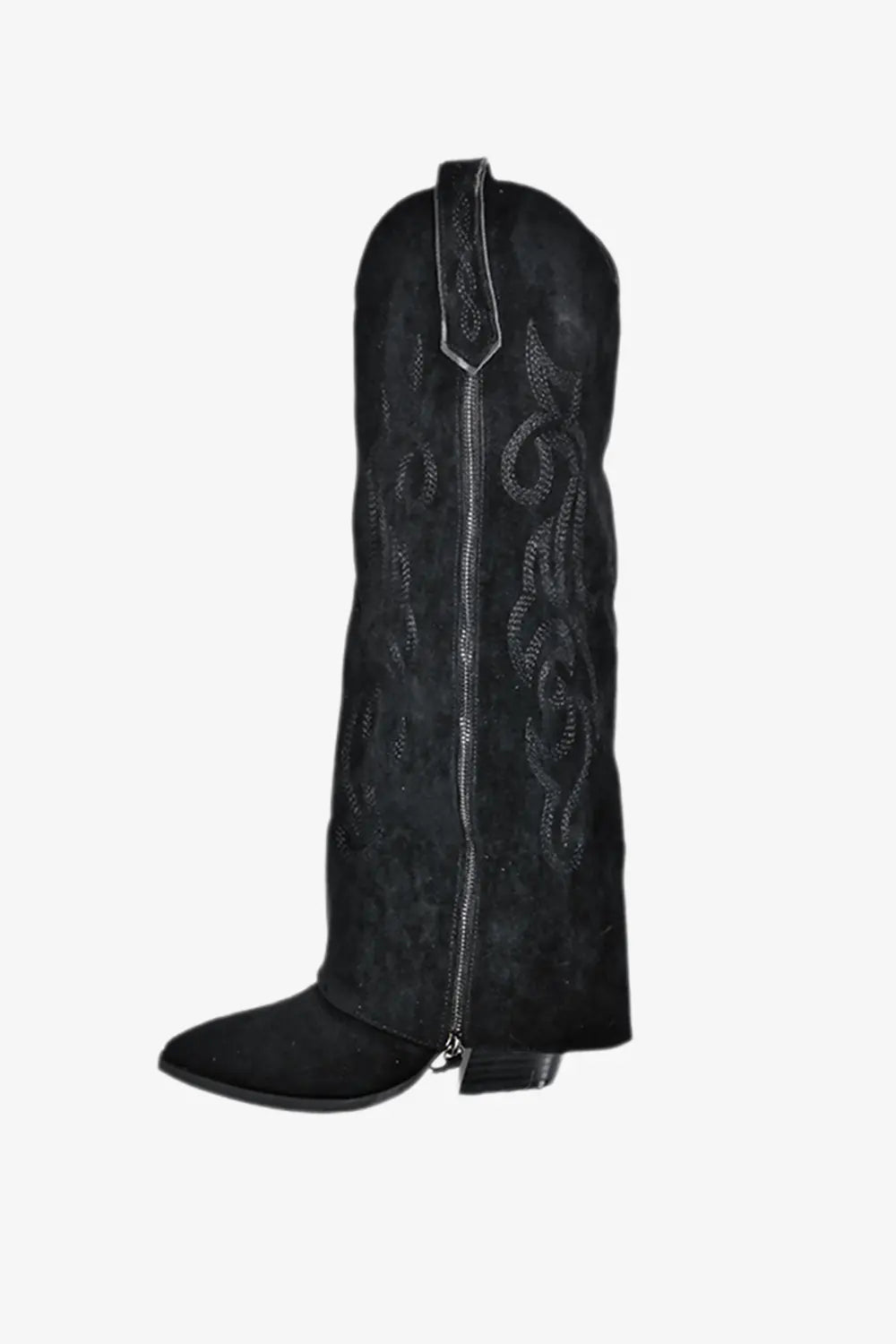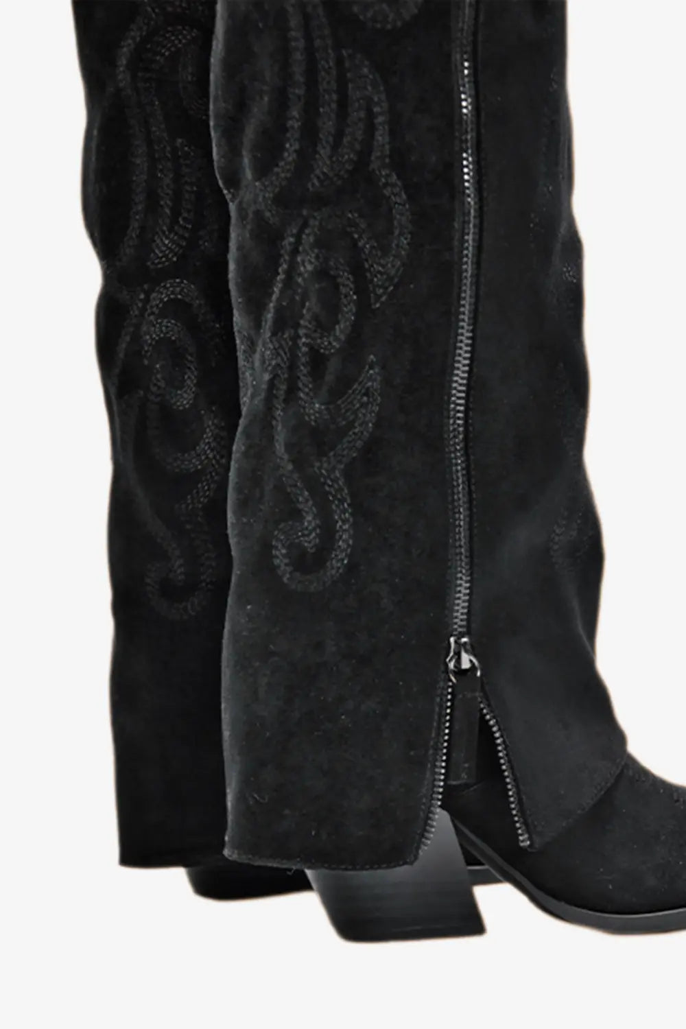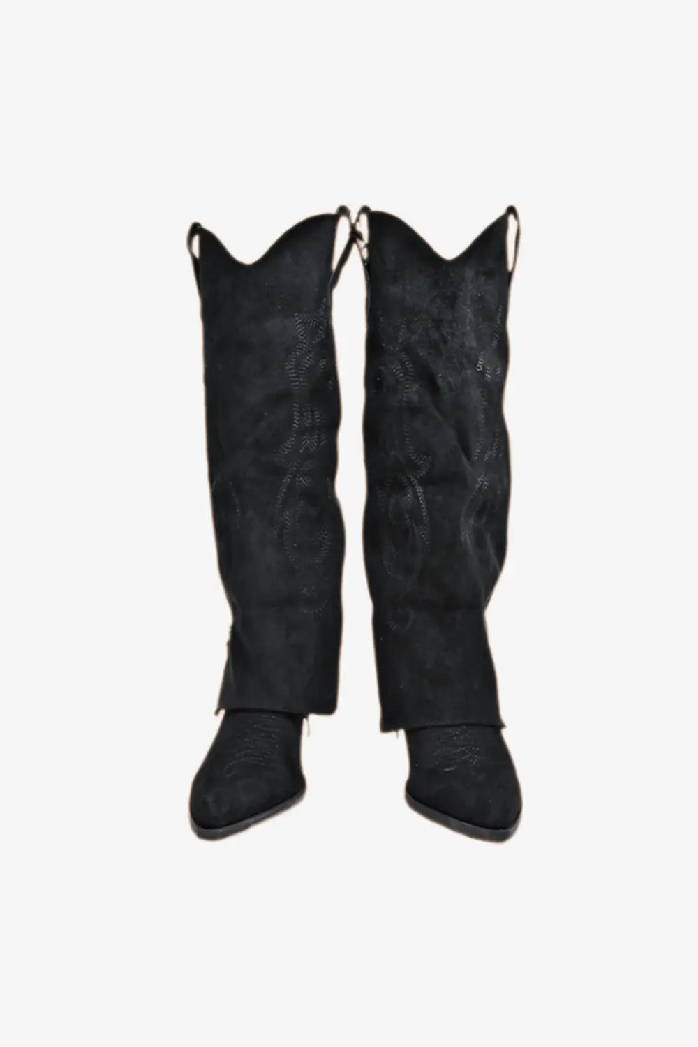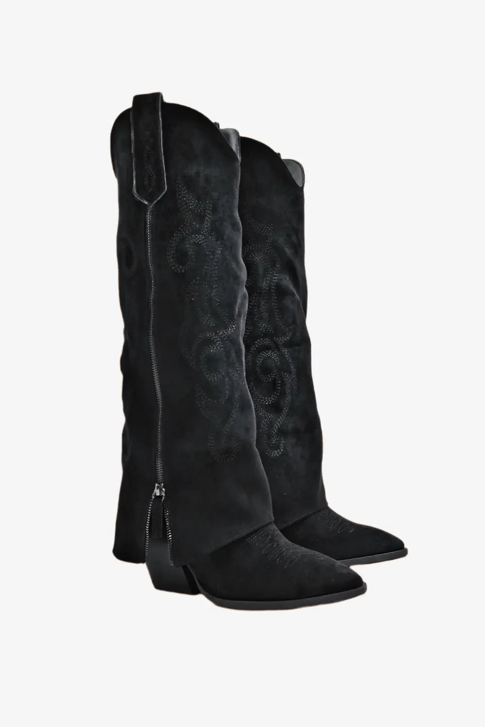 Luce sofisticada y moderna con estas botas largas de gamuza negra texturizada, suaves al tacto y con un diseño elegante que estiliza la figura. Perfectas para complementar looks urbanos o más formales, aportando un toque de distinción y comodidad en cada paso.